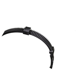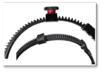 Damit DSLR Objektive auch bei professionellen Film- & Video-Produktionen eingesetzt werden können, müssen diese zur Kopplung an einen Follow Fokus oder eine Zoom-Vorrichtung nachträglich mit einem Zahnkranz im Mod 0.8 versehen werden.Die optimale Lösung bietet hier ein Zip Tie Lens Gear, welcher mit einer Aussenverzahnung versehen ist und um das Objetiv geschlun-gen wird, wobei die herkömmliche Variante noch mit einem oder zwei separaten Kabelbindern festgezurrt werdenmuss und es hier wegen der unter-schiedlichen Objektivdurchmesser mindestens 4-6 Varianten der Lens Gear Ringe in unterschiedlicher Länge bedarf.Der patentierte OMNIGEAR ist wie ein Kabelbinder konstruiert und mit einer Gesamtlänge von 380mm für Objektive bis 117mm einsetzbar. Die innere Mikro-Rastverzahnung ermöglicht eine sichere Verbindung mit den Einstellringender Objektive,ohne deren Gummierung zu beschädigen. Optional gibt es hierfür verstellbare Gleiter als “Hard Stop”, sowie als Einstellhilfe einen einschraubbaren Zoom- oder Fokus-Bedienhebel.